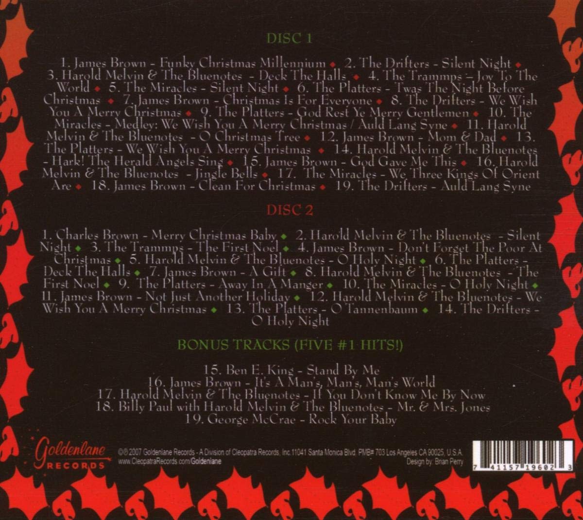 Spend this holiday season in the company of soul legend James Brown and an all-star gathering of his peers on this special 2 disc collection! Includes performances of all your favorite holiday anthems by James Brown, The Miracles, The Platters, The Trammps and more PLUS 5 bonus #1 hit singles!